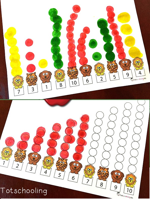 Çocuklar önce hayvanlarla işaretli rakamı tanıyor ve bir o kadar noktayı parmak boyası kullanarak hayvanların üstüne yapıyor. İndirme sayfasında rakamların yerleri değiştirilerek 3 çeşit oluşturulmuş. Denemesi bedava!
