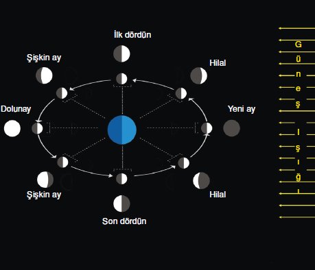 NOT: Ay’ın kendi ekseni etrafında dönmesi ile Dünya etrafında dolanması aynı sürede gerçekleştiği için Dünyadan bakıldığında Ay’ın hep aynı yüzü görülür.