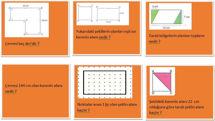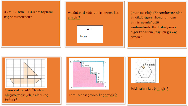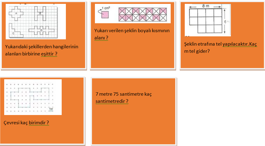 4)Belirlenen bir alanı santimetrekare ve metrekare birimleriyle tahmin eder.