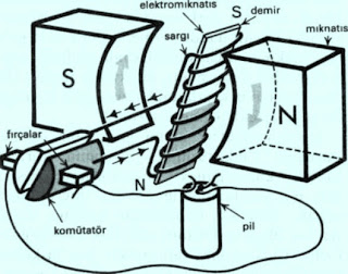 Elektrik enerjisini hareket enerjisine dönüştürebilen düzeneklere elektrik motoru denir. Elektrik motoru mıknatısların aynı kutuplarının birbirine uyguladığı itme, zıt kutupların birbirine uyguladığı çekme kuvvetinin etkisiyle döner. Bunun için üzerinden akım geçtiğinde elektromıknatıs olabilecek bir bobin zıt kutupları birbirine dönük iki mıknatıs arasına ya da U mıknatısın zıt kutupları arasına yerleştirilir. Motor elektriğe bağlandığında elektrik akımının etkisiyle bobin elektromıknatıs halini alır. Sabit mıknatısların birbirine dönük zıt kutuplarından biri elektromıknatısın bir kutbunu iterken diğer kutbunu çeker. Böylece elektromıknatısı oluşturan bobin bir yöne döner. Dönün bobin ucuna takılı pervane, bıçak, çırpıcı gibi araçları da döndürür. Günümüzde pek çok alanda kullanılan elektrik motorlarının çok küçük modelleri yapılmıştır. Bu modeller özellikle uzay araştırmaları ve tıp alanında kullanılmaktadır.Hareket Enerjisi Elektrik Enerjisine Dönüşür mü?