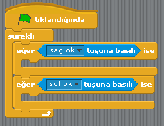 Buna ek olarak bir de karakterimizi sağa sola hareket ettirelim. Bunun için aşağıdaki “Eğer” fonksiyonlarının içini de siz doldurun.