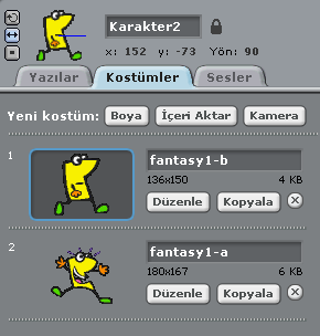 Karakterimiz zıpladığında 2. kostüme geçecek, yere bastığında 1. kostüme geçecek. Şimdi de zıplama ve kostüm değiştirme işlemleri için gerekli kodları ekleyelim.