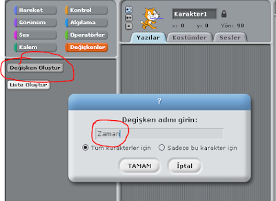 Ekrana aşağıdaki pencere gelecek. Buraya istediğimiz ismi verebiliriz. Kullanacağımız amaca uygun bir isim olmalı. Ben burada “Zaman” diyorum ve tamam düğmesine basıyorum.
