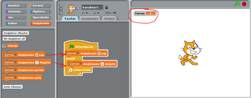 Programı çalıştırdığımızda, “Zaman” değişkeninin değeri her saniyede bir artacak. Böylece programımıza süre eklemiş olduk.
