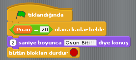 Puan=20 olduğunda oyun bitecek.