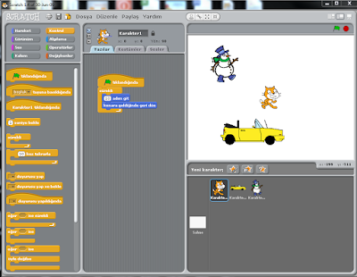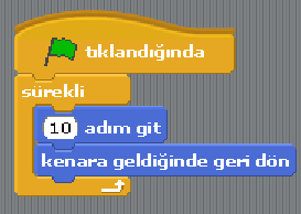 Karakterin ekranda sürekli hareket etmesini sağlamak için resimdeki blokları sürükleyerek bir program oluşturabiliriz.