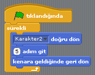 Sahnedeki karakterin, diğer bir karakteri takip etmesini sağlayan kod