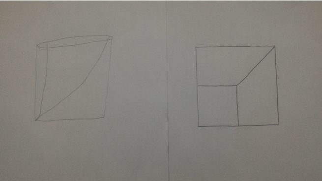 ÇOCUĞUN ANLATTIĞI 1)Büyük üçgenlerin alt tarafları yani uzun taraflarını birleştiriyoruz. 2)Kareyi üçgenleri birleştirdiğimiz tarafta, aynı üçgenleri birleştirdiğimiz gibi koy. 3)Küçük üçgenleri sola ve sağa bakacak şekilde en üste koy. 4)Diğer kalanları da altına koy. 5)Üçgenin ucunu dörtgenin büyük yerine koy. 6)Diğer kalanın da ucunu sol taraf ucuna koyuyoruz. | GEOMETRİK İFADESİ 1)Büyük üçgenlerin uzun kenarlarını birleştiriyoruz. 2)Üçgenleri birleştirdiğimizde oluşan karenin köşesine, koyacak olduğumuz karenin bir köşesi gelecek şekilde koy. 3)Küçük üçgenleri, köşeleri karenin üst kısımdaki kenarlarına gelecek şekilde koy. 4)Üçgen ve paralelkenarı şeklin en alt kısmına koy. 5)Üçgenin köşesi büyük üçgenlerin oluşturduğu karenin aşağı yönlü kenarlarından sağ tarafta olan kenara değecek şekilde koy. 6)Paralel kenarı da büyük üçgenlerin oluşturduğu karenin aşağı yönlü kenarlarından sol tarafta olan kenara değecek ve dar açılı köşesi değecek şekilde koy. |