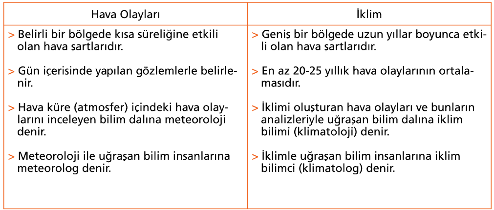 Ø Havada meydana gelen sıcaklık farkından ve havadaki nem (su buharı) kaynaklanan olaylara hava olayları denir. Hava olayları ile ilgilenen bilim dalına meteoroloji, hava olayları uzmanına ise meteorologdenir.