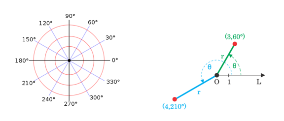 Şimdi de asıl konumuz olan Kutupsal Koordinatlardan bahsedeceğiz. Kutupsal Koordinat, Kartezyen Koordinat sisteminde olduğu gibi iki bileşen ile gösterilir. P noktasının Kutupsal koordinatları başlangıç noktası Orijin alınarak OP uzaklığı r ve x(apsis) ekseni ile yaptığı pozitif yönlü açı Ѳ olmak üzere P(r,Ѳ) ile gösterilir.