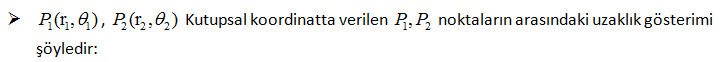 Şimdi de Kutupsal koordinatları verilen noktalarla ilgili birkaç formül verelim.