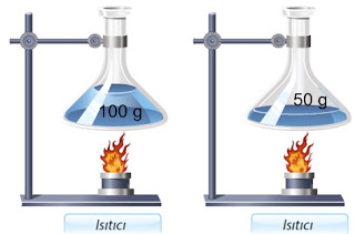 v Kütlesi fazla olan maddenin sıcaklığı az artarken kütlesi az olanın ise sıcaklığı fazla artar. (Kütle ile sıcaklık artışı ters orantılıdır.