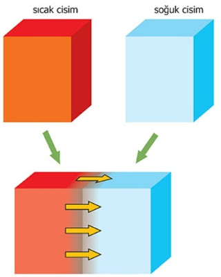 v Sıcaklıkları farklı iki madde arasında ısı alış-verişi gerçekleşir.