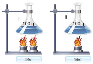 v Kütlesi eşit olan iki maddeye farklı sayıdaki ısıtıcılar etki ederse ısıtıcı sayısı fazla olan sıvı da daha fazla sıcaklık artışı gözlenir. (Isıtıcı sayısı ile sıcaklık artışı doğru orantılıdır.)