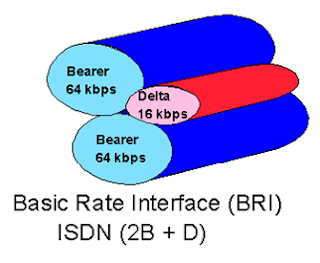•BRI’da 64 Kbps’da çalışan 2 B (Bearer) ve 16 Kbps’da çalışan 1 D (Delta) kanalı vardır. Toplam 64*2+16 = 144 Kbps iletim sağlar.