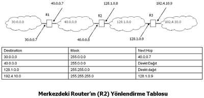 •Bu işlem router’ların içerinde kayıtlı bulunan yönlendirme tablosuna (routing table) bakılarak yapılır.